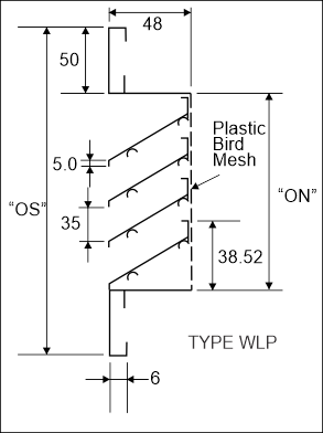 Weather Louvre manufactured of extruded Type 50S anodising grade aluminium. The fixed horizontal blades are held in place by screws. Blades are spaced 35mm apart. |